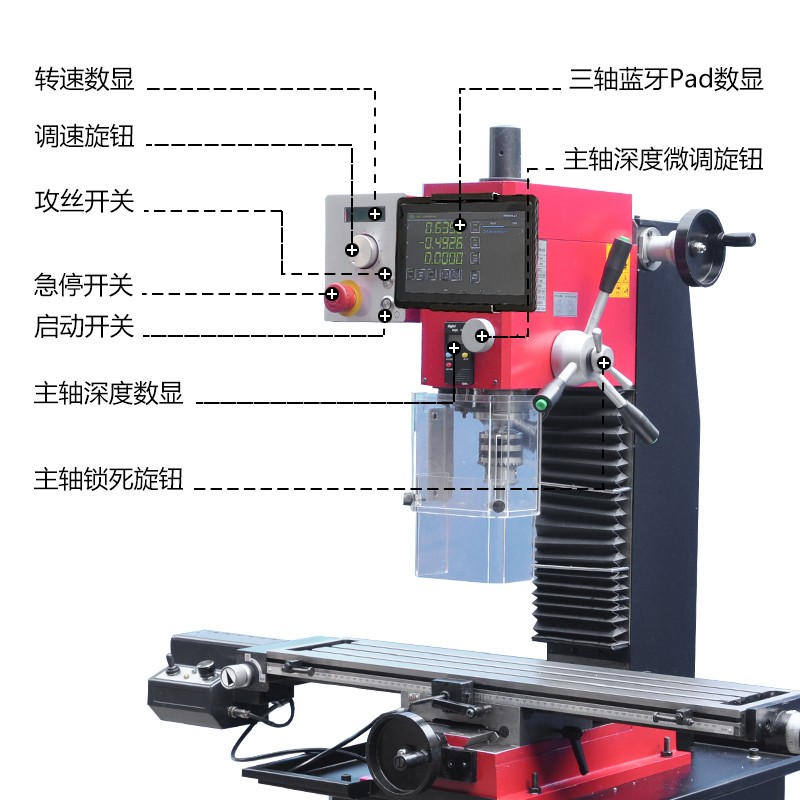可用于金属件(铝、铜、球墨铸铁、钢等)及软材料(木材、尼龙等)切削的台式钻铣床