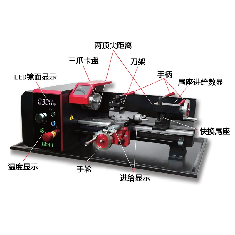 可用于金属件(铝、铜、球墨铸铁、钢等)切削的迷你车床